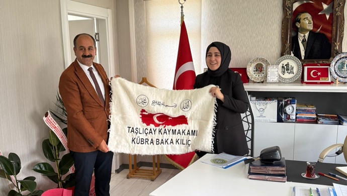 AĞRI İLİ DAMIZLIK KOYUN KEÇİ YETİŞTİRİCİLERİ BİRLİĞİ BAŞKANI MEHMET NURİ SAMANCI`DAN TAŞLIÇAY KAYMAKAMI KÜBRA BAKA KILIÇ`A ZİYARET AĞRI İLİ DAMIZLIK KOYUN KEÇİ YETİŞTİRİCİLERİ BİRLİĞİ BAŞKANI MEHMET NURİ SAMANCI`DAN TAŞLIÇAY KAYMAKAMI KÜBRA BAKA KILIÇ`A ZİYARET