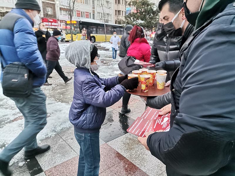 Türk siyasetinin yeni partilerinden kurucusu Mustafa Sarıgül’ün olduğu Türkiye Değişim Partisi İstanbul il başkanlığı tarafından organize edilen sokaktaki vatandaşlara sıcak çorba dağıtımında Türkiye Değişim Partisi Şişli İlçe Başkanı Abdülkadir Sezgin önderliğinde Şişli halkına parti genel başkanları Mustafa Sarıgül’ün selam ve sevgilerini ileterek sıcak çorba dağıtıldı.